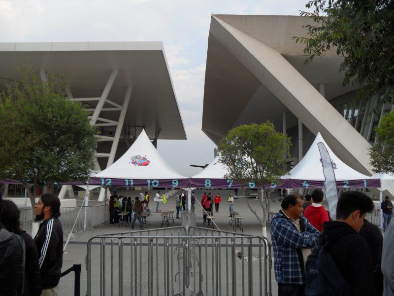 Llegue al Centro de Congresos temprano a eso de las 3:30 am, ya saben que me gusta ser el/de los primeros, el personal llego a eso de las 6-7 am para poner orden, pero fue lo contrario, de hecho perdí mi lugar y ya no fui el primero, se hizo un relajo porque nos formaron en 3 filas que se hicieron 9, los que traían el boleto físico, el boleto impreso y los que traían pase de prensa y pulsera, pero de aquí nos dividieron en los que traían los paquetes de $4,000 y $8,000 pesos que les aseguraban entrar a las 9 y 9:30 pero no entraron a esa hora, los de la 9, hasta las 9:20-9:30 entraron y los segundos hasta las 9:45 se les dio acceso y a nosotros los simples mortales como 5 minutos después. Y se nos prohibió entrar con cualquier tipo de Alimento y Bebida, ¿Porque?, para que gastáramos en unos Food Trucks que pusieron y que estaban carisimos y unos locales de Snacks, igual de caros. Nos hicieron pasar dos filtros de seguridad, te revisaban tu mochila y te cateaban, si como si entraras a un concierto.